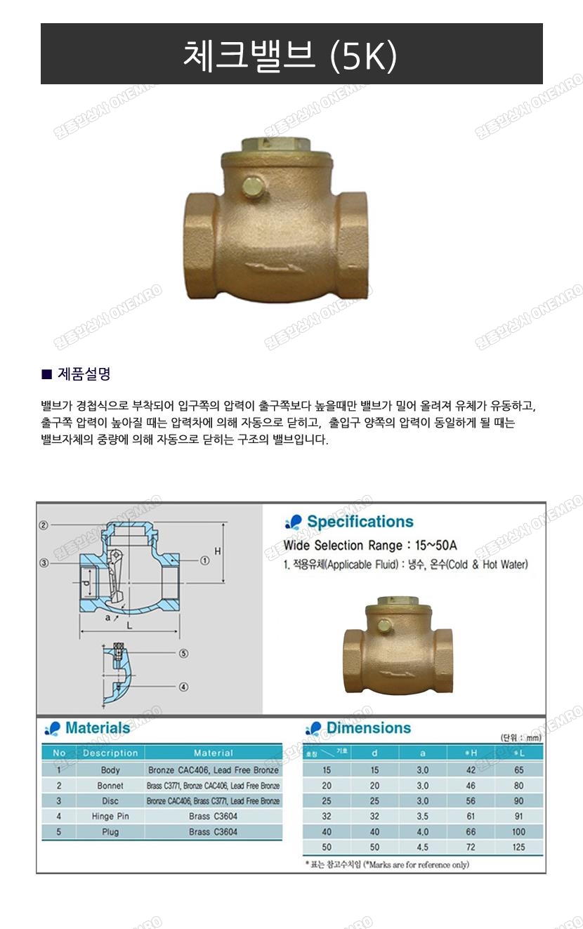 G100564 체크밸브(5K) 15A 1 개 3,640원 3,640원 수입 시중품
