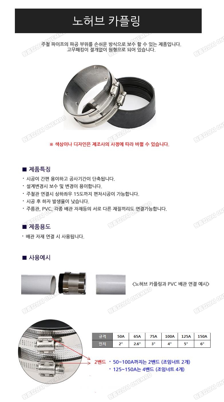 G101056 노허브 카플링 100A 1 개 2,630원 2,630원 국산 시중품
