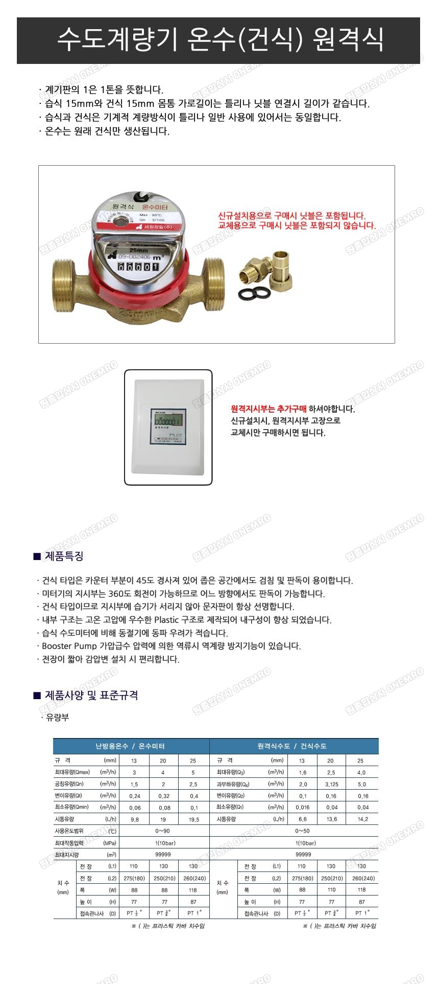 | 수도계량기 온수(건식) 원격식 교체용 20A | |